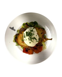 6. TAG. Kurki w śmietanie z cebulą, ser dojrzewający, rukola