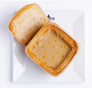 Żurek z jajkiem i białą kiełbasą podawany w chlebie