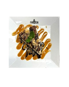 PAN.Krem słony kajmak, orzechy ziemne, wiśnie, czekolada, sos śmietankowy